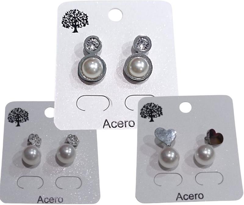 Si te gustan las perlas, este diseño es original. Aunque basado en el minimalismo, cada perla  cuelga de formas distintas: flor, corazón y círculo plateados.