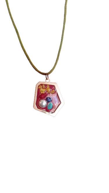 Collar dimensiones. Largo 37 cm. Colgante, 3 cm ancho, 4 cm alto