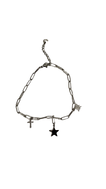 Pulsera de acero. Cadena con estrellas y cruz.