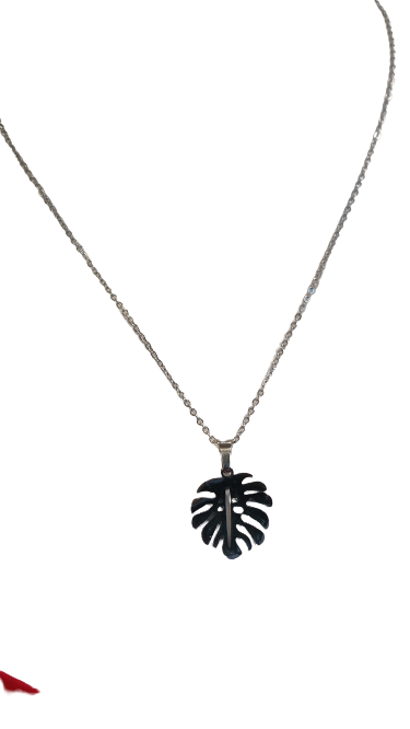 Collar de acero quirurgico con colgante de hoja de helecho.