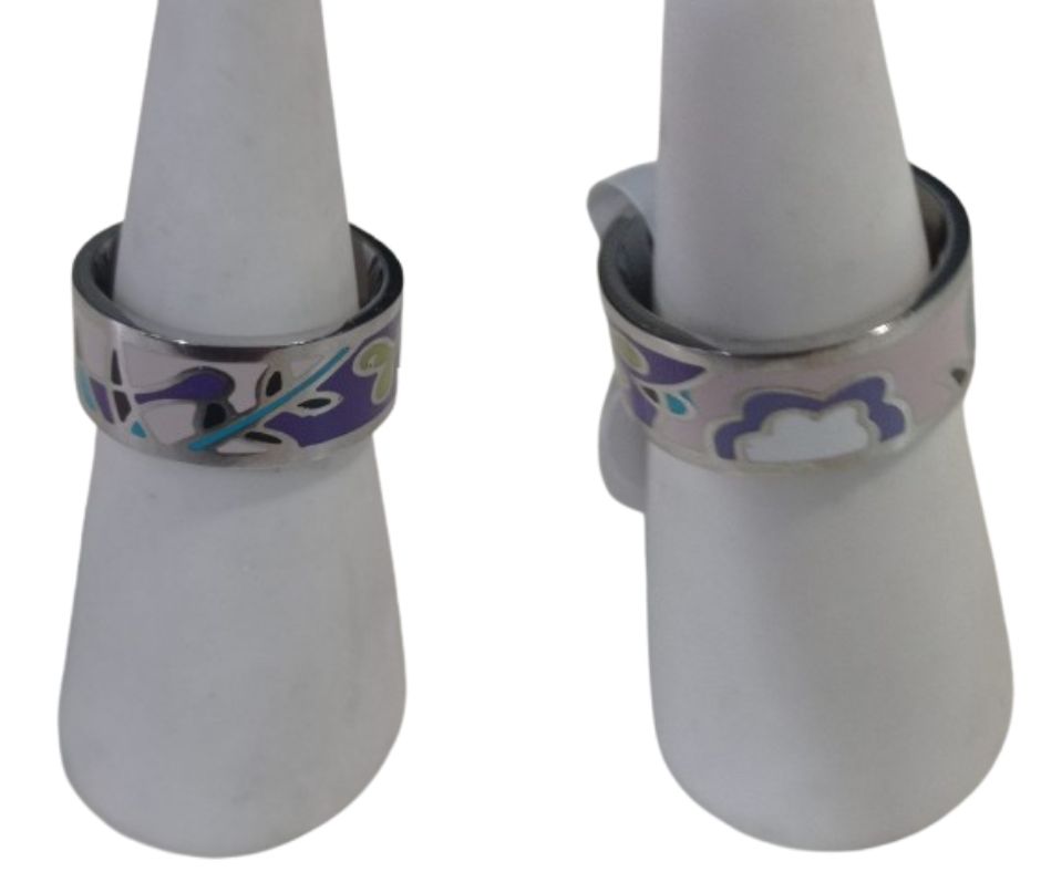 • Anillo de acero con esmalte en tonos violetas