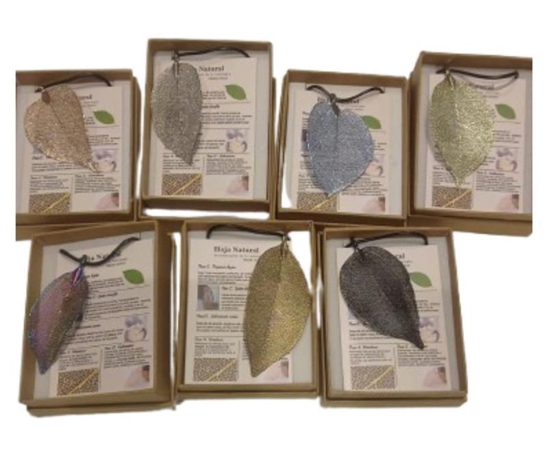 Original hoja en filigrana, que cuelga de un cordón negro que puedes regular para poner en gargantilla o más largo. Elegante para llevar en varias ocasiones, incluso con outfit casual.  Va en una caja que explica las propiedades de las hojas.