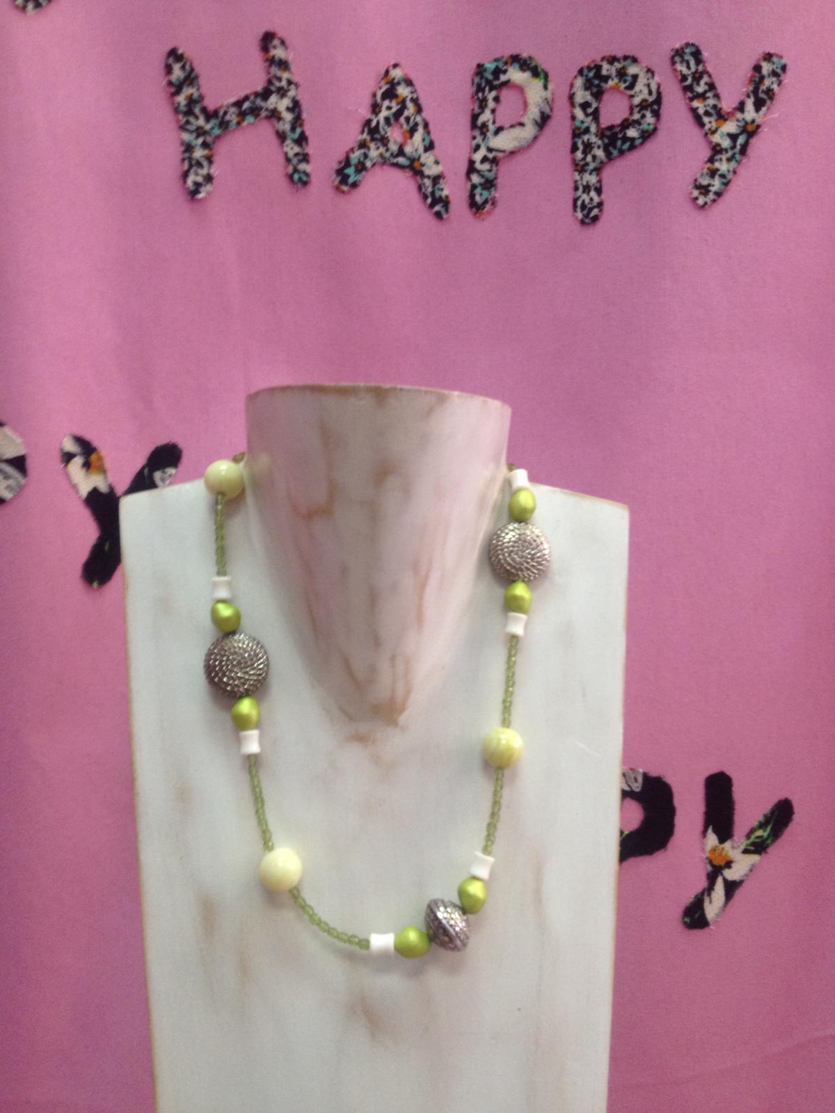 Collar gargantilla de piedras y metal de distintos tamaño en tonos verdes y plateado. Da un toque estiloso a tu outfit casual, y lo puedes usar en un evento.