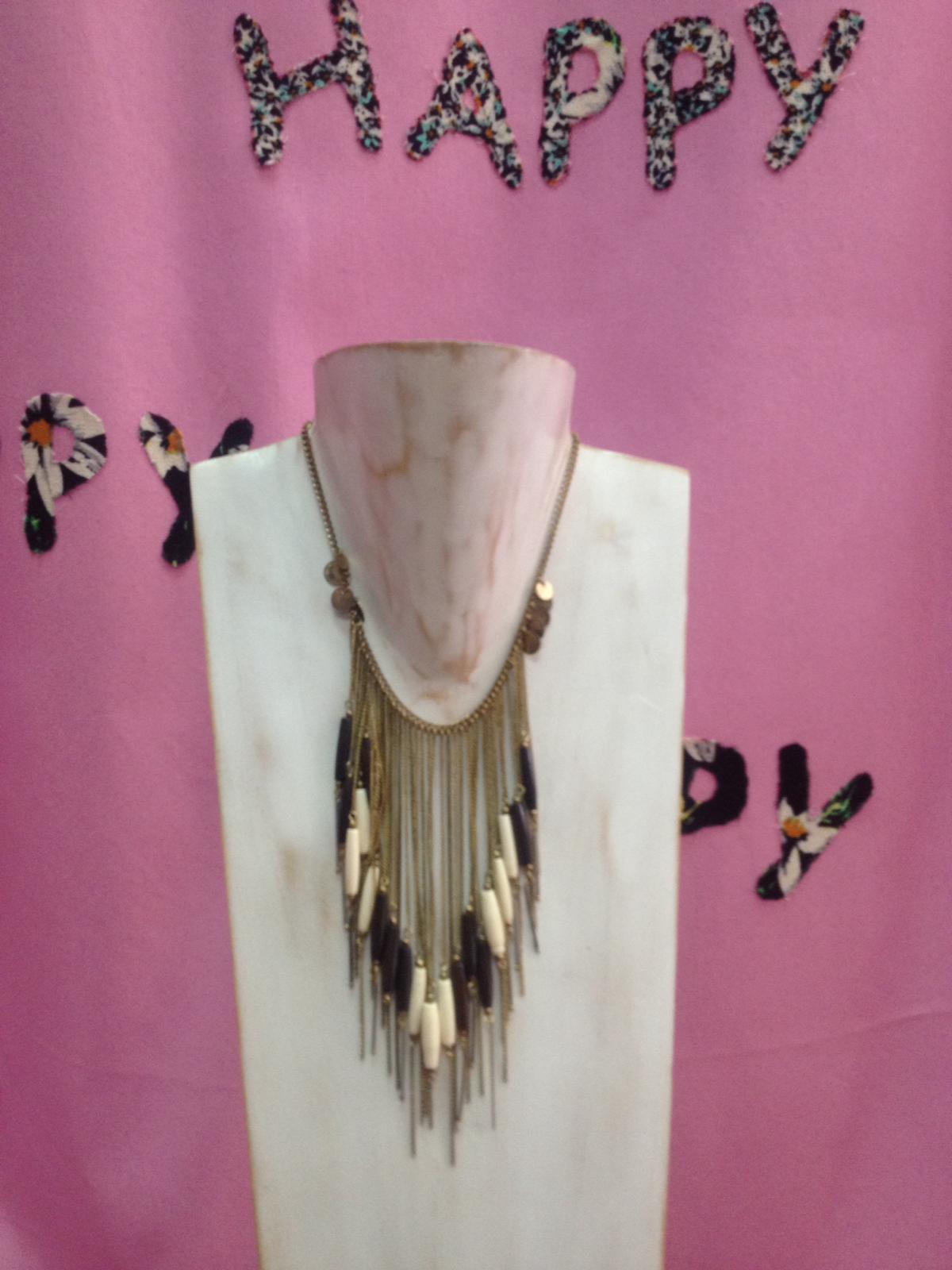 Collar gargantilla de inspiración etnica, con tonos dorados, marrones y marfil. Da un toque étnico a tus outfits con este collar.
