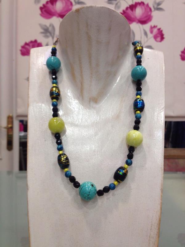 Colores de las piedras del collar: combinación de negro, verde y mostaza