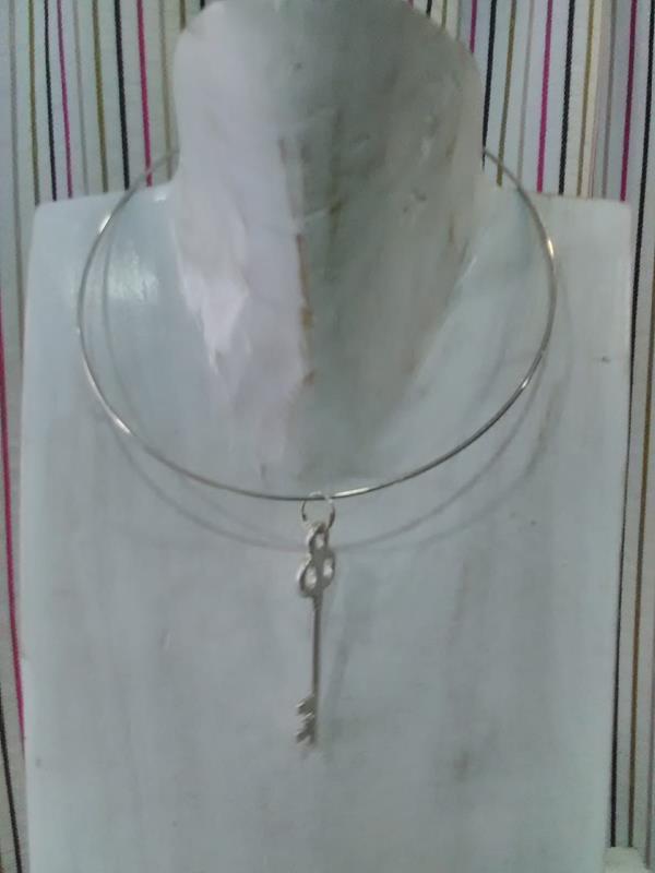 Gargantilla metálica con colgante de llave plateada. Original para llevar con escote en uve en un estilo casual a base de jeans o leggings.