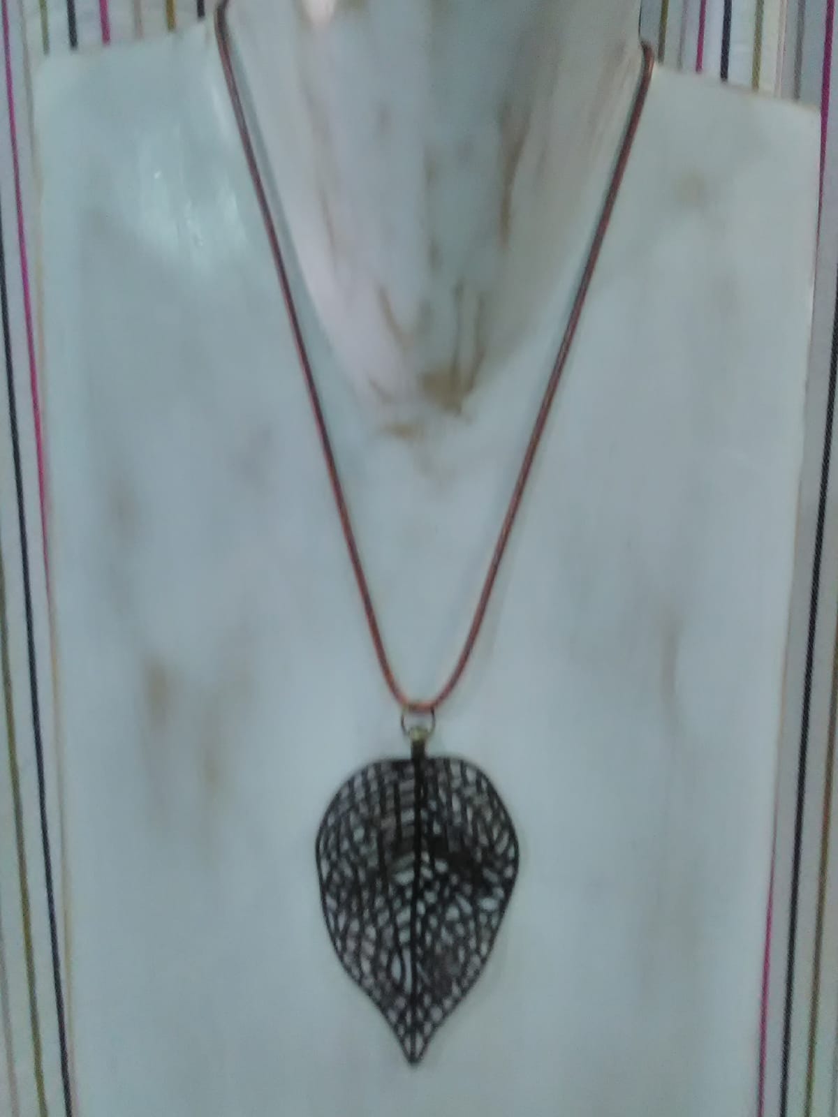 • Collar largo,hoja cobriza en filigrana