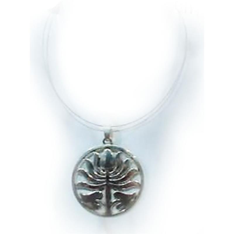 Collar gargantilla, con colgante de libelula plateada geométirca, enmarcada en circulo.