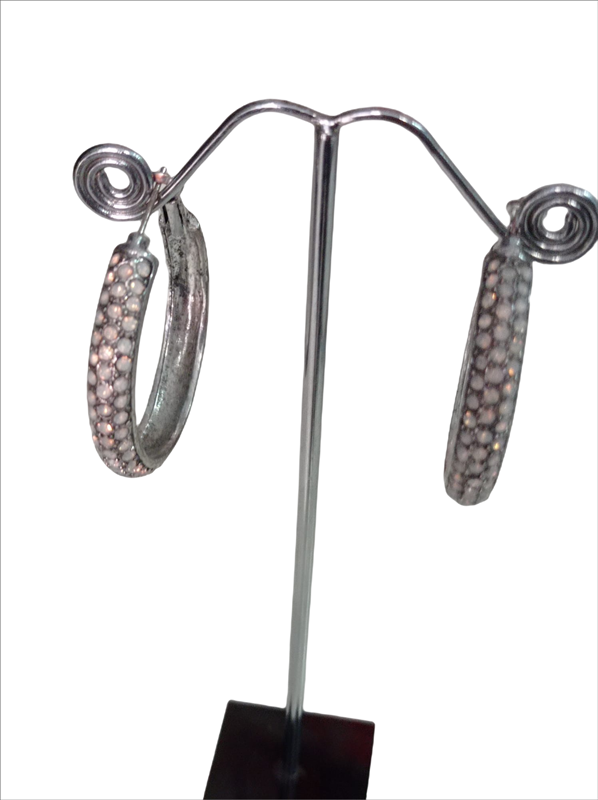 Pendientes de aro con pedrería incrustada, con reminiscencias vintage, para dar toque extremado a tu estilo casual. Los cristales transparente con toque del reflejo.