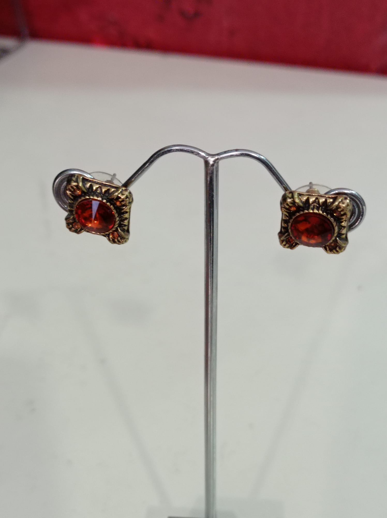 Pendientes cuadrados inspiración vintage, dorados, con piedra marrón en marco barroco dorado. Toque evento para estilo casual, o discreción en evento.