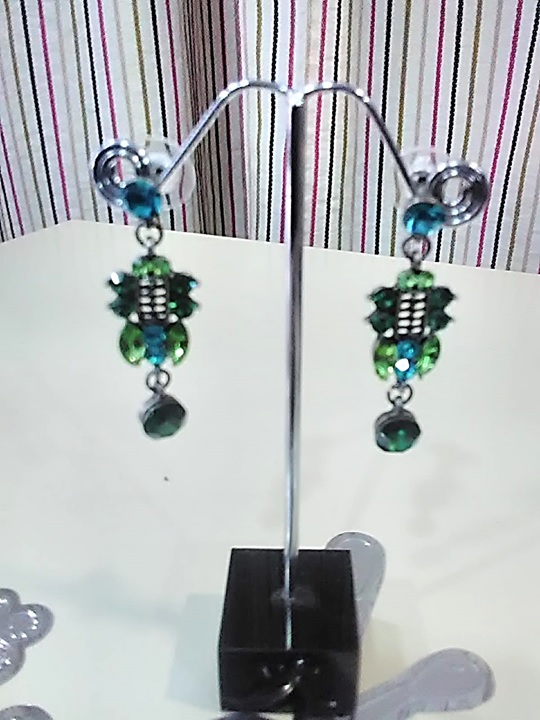 Extremados pendientes colgantes, en forma de escudo envuelto de piedra verde. Dan un toque original a tu estilo casual.