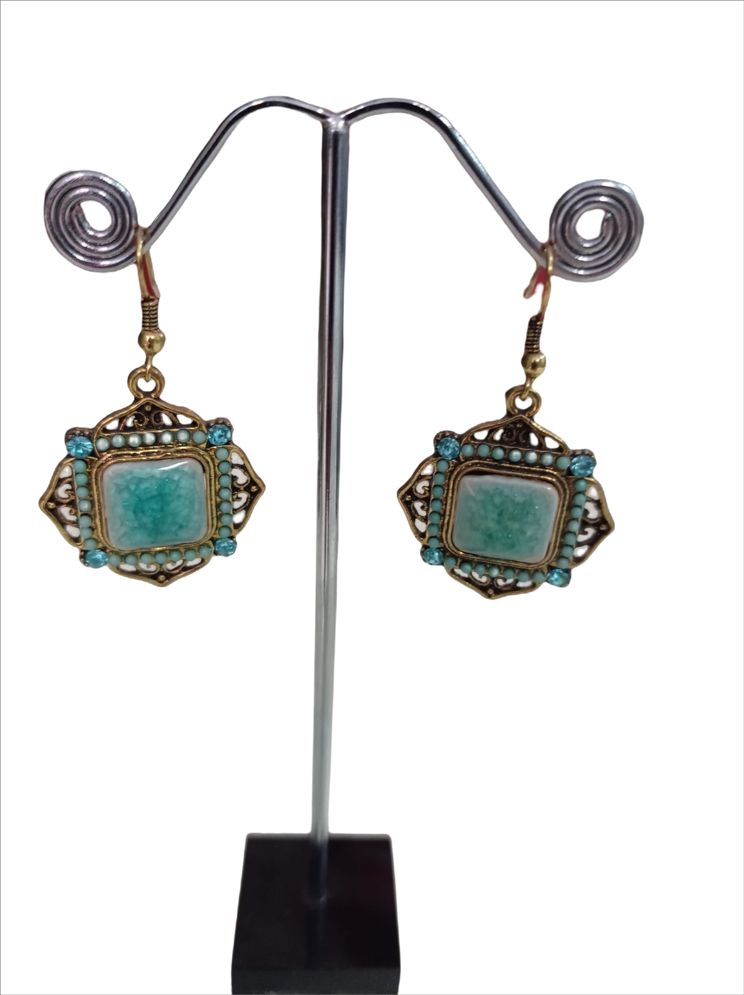 Pendientes de inspiración vintage, compuestas de un cuadro en forma de rombo y cuadro cruzados de color azul. Discretos y con mucho juego para combinar con tus outfits.