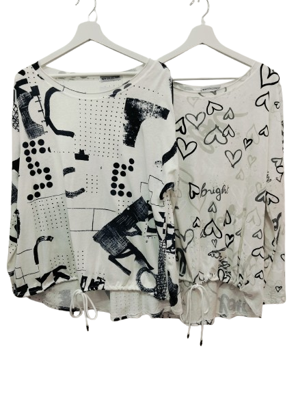 Camiseta de manga larga tipo sudadera. Blanca con estampados originales