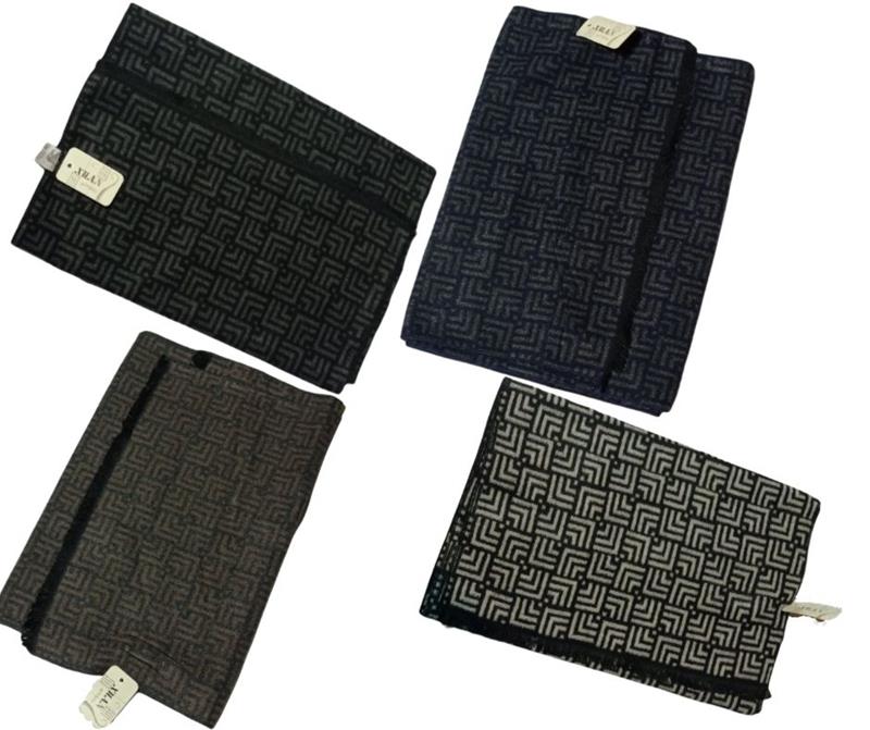 Bufanda caballero de cachemire, suave y cálida para hombres o jóvenes, con el dibujo de pequeños laberintos. Disponible en 3 colores: gris antracita, negro, marrón. El fondo es de un color, y los laberintos en otra tonalidad que contrasta.