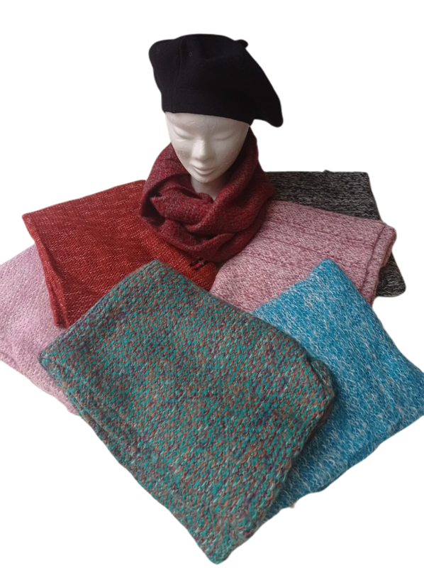 Bufanda cerrada también llamada "cuello" o "braga" para abrigar el cuello ajustándola como más te gusta y con los guantes puestos. Estas no estan forradas, pero son cálidas y con tacto suave.