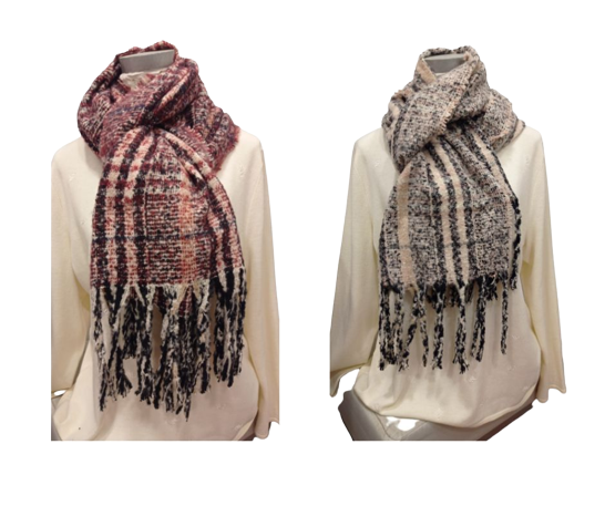 Bufanda de rayas. Ancho 50 cm. Largo total 225 cm. Largo sin flecos 190 cm.