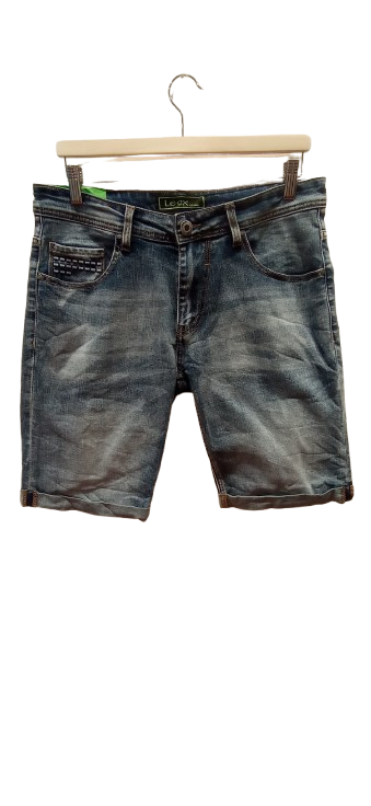 Tejano para hombre corto, efecto arrugado y desgastado, casual y original. Medidas: Contorno de cintura de 84 cm hasta 104 cm. Contorno de cadera 96-116 cm. Largo 52 cm. Contorno de pierna 48-58 cm. Tiro 23-28 cm
