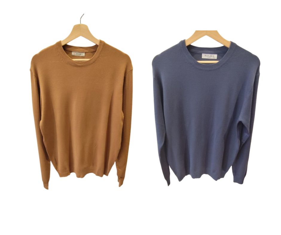 Jersey para hombre, liso de cuello redondo, casual y corte clásico. El tacto es suave y agradable. Disponible en tono marrón o azul.