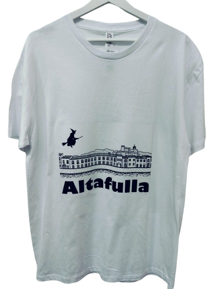 Camiseta de algodon con el dibujo de una Bruja sobrevolando Altafulla