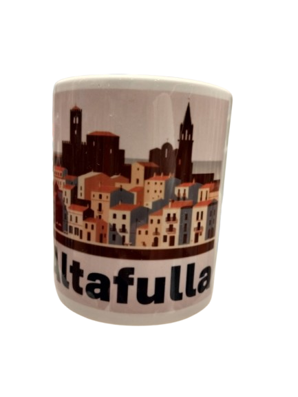 Taza de Cerámica con Dibujo Panorámico de Altafulla. Un pedacito de Altafulla en tus manos. Presenta un diseño panorámico exclusivo que retrata la belleza del casco histórico, el castillo medieval y el encanto mediterráneo de Altafulla.