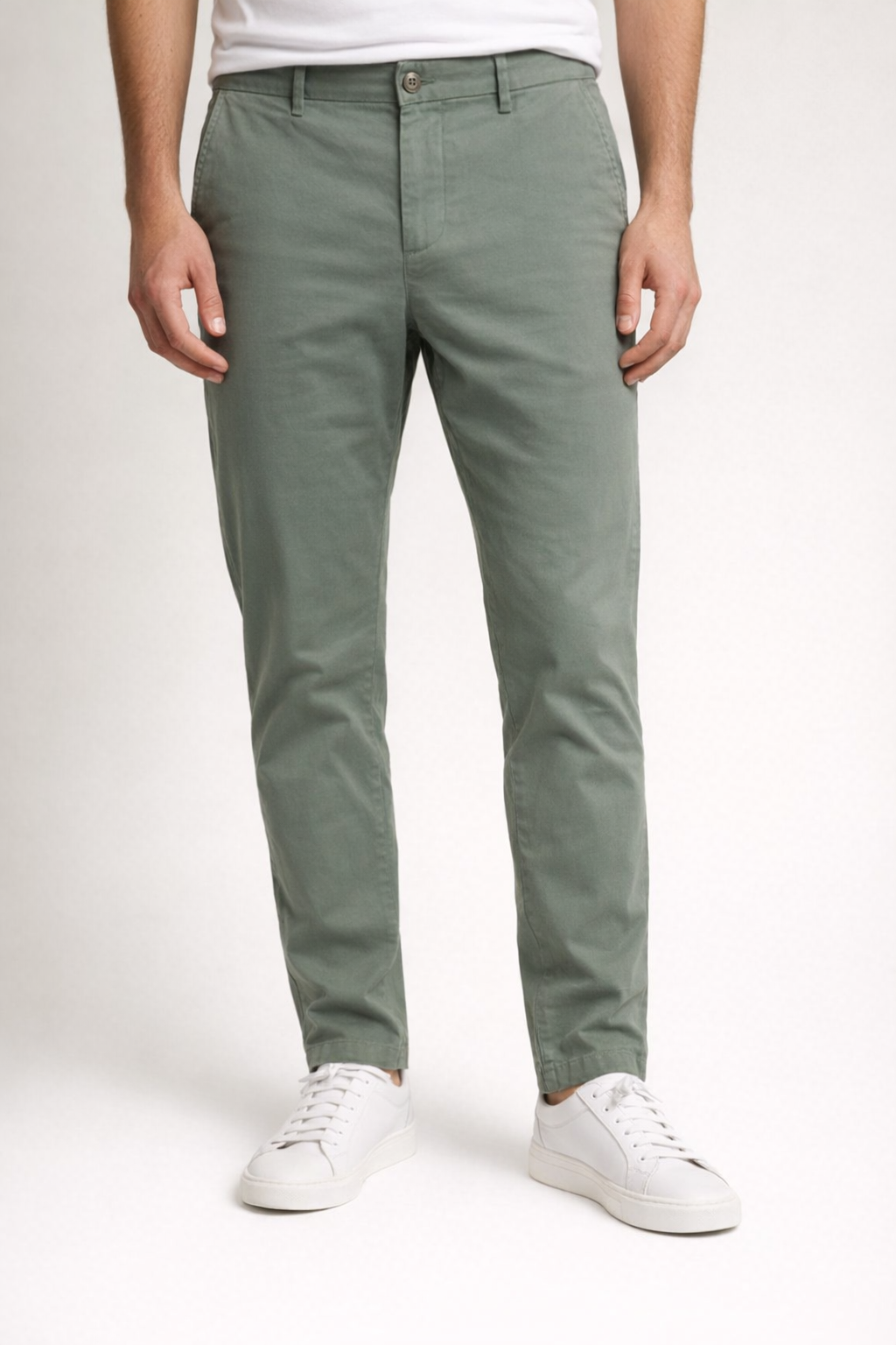 Disfruta del buen tiempo con este pantalón de algodón ligero en color verde caqui. Diseñado para ofrecer frescura y libertad de movimiento. Tejido 100% algodón, transpirable y suave. Color verde caqui, fácil de combinar. Corte cómodo y moderno