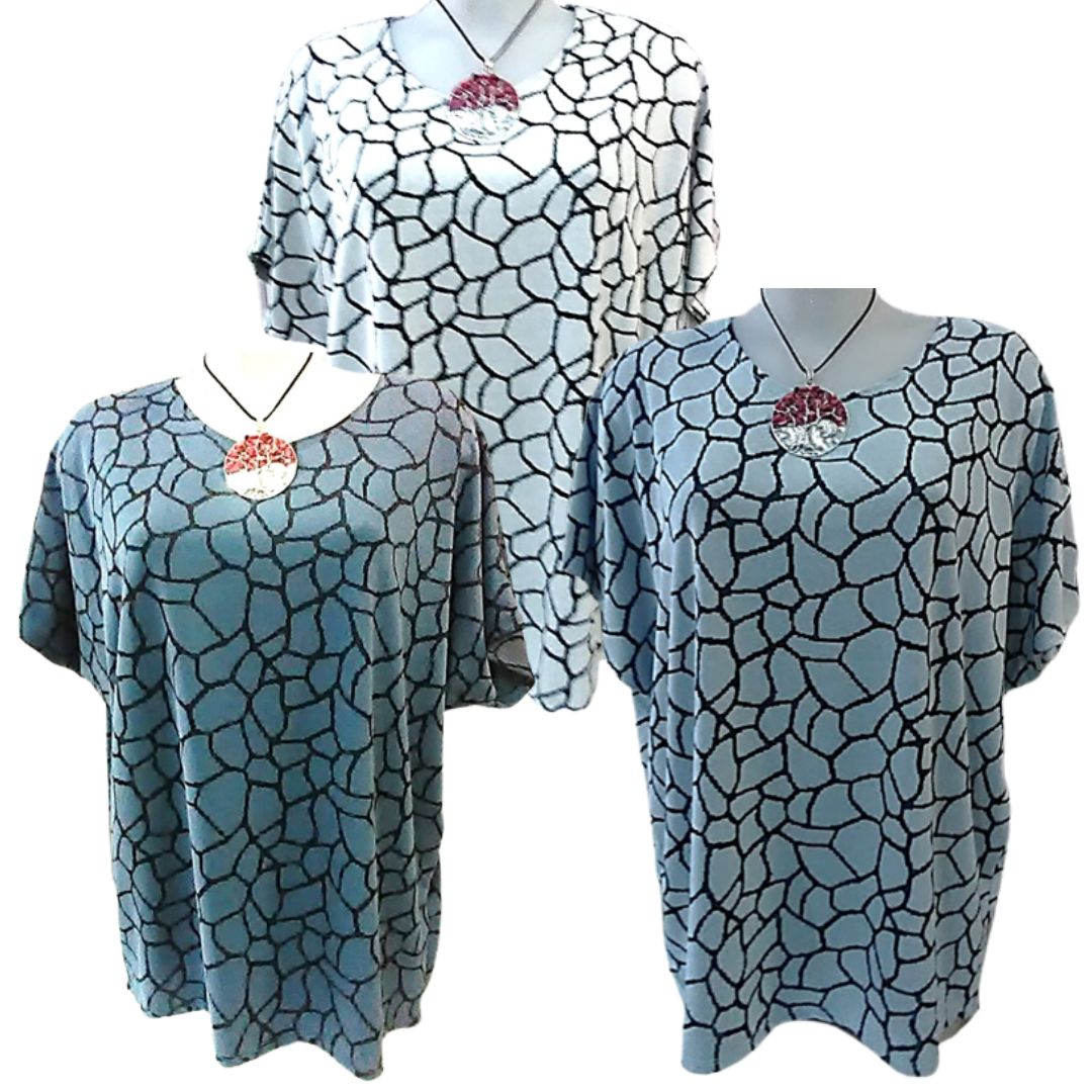 Blusa manga corta, estampado abstracto inspiración gaudiana "trencadís". Originalidad y elegancia para tallas grandes.