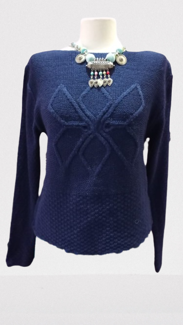 ¿te gusta ir ajustada? Imaginate este jersey puesto con pantalones rojos, beig  o rojo. Es un jersey ajustado con relieve en rombo. Disponible ya solo en azul