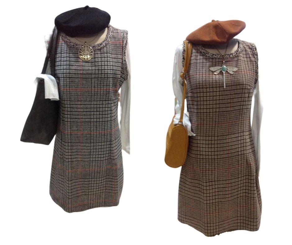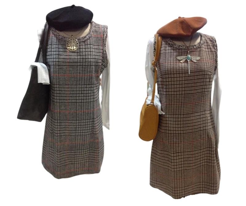 ¿Te gusta la moda colegiala? Ponte este pichi a cuadros galeses, de paño combinado con blusa, o con camiseta para darle un toque más casual. El fondo de los cuadros es beig o gris.