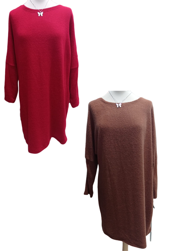 Cálido vestido, de punto, elástico, inspiración jersey, disponible dos colores: rojo y teja. largo 83 cm. Cadera: 120 cm