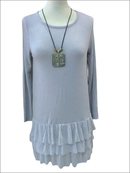 El vestido gris con volantes tiene las siguientes medidas: