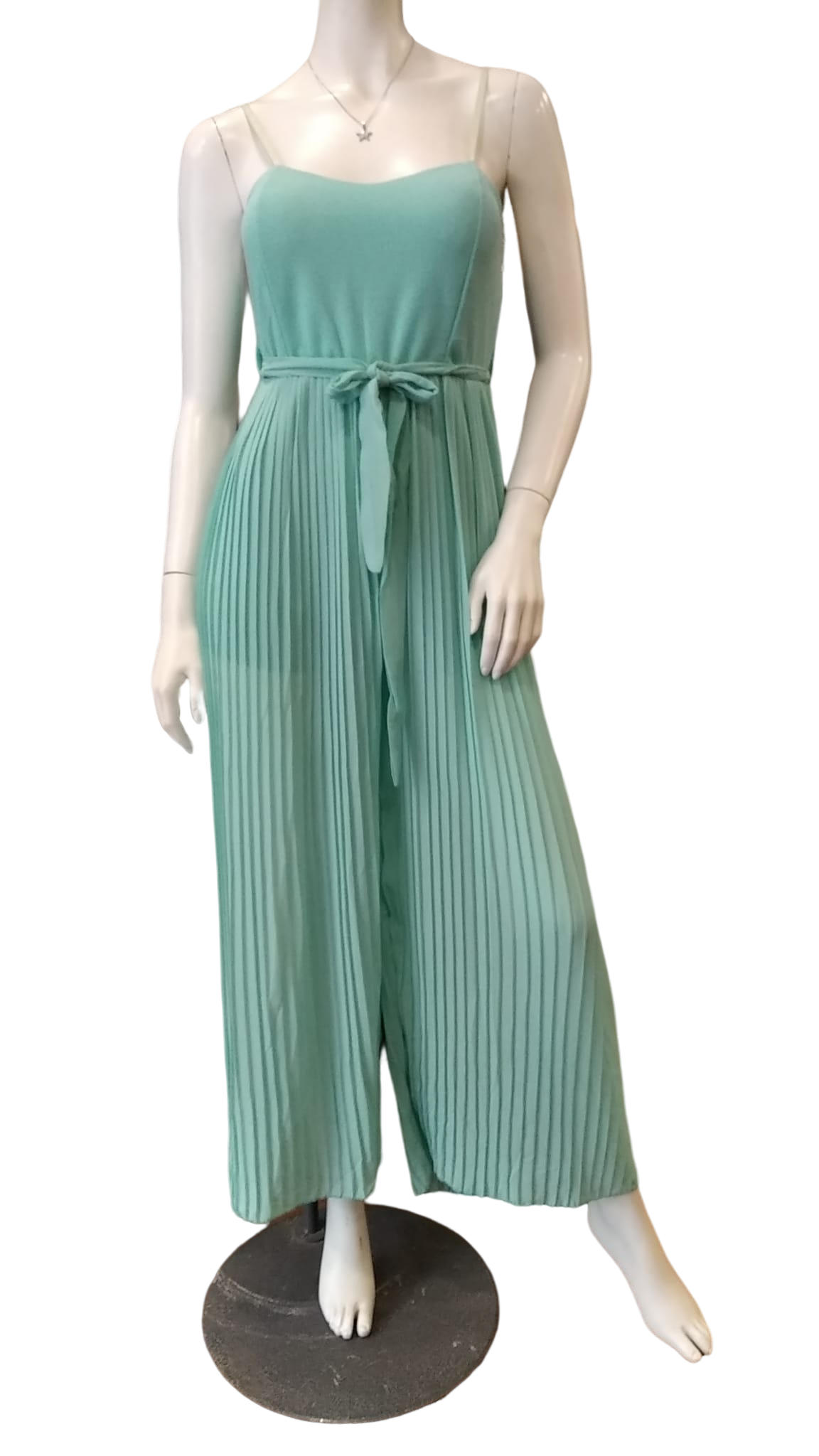 Original mono plisado con tirantes, ideal para un evento o para salir a cenar con toque elegante. Usa diversos cinturones para darle un toque más personal.
