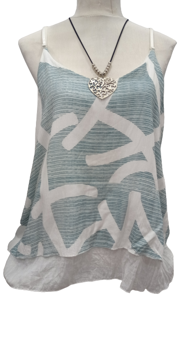 Blusa fresca de tirantes, en color verde agua y rayas serpenteantes. Con forro