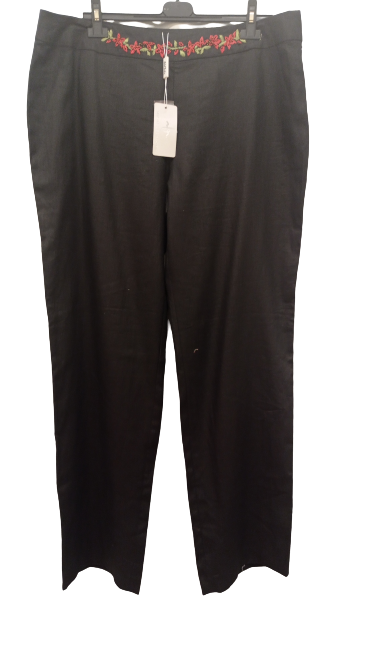 Pantalon liso en negro y detalles bordados de flores en la cintura. Talla Grande