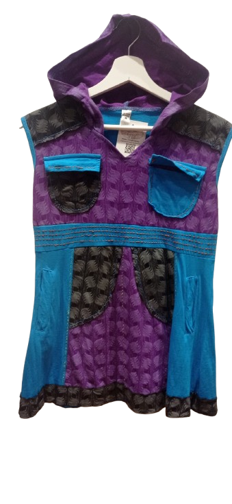 Camiseta sin mangas y con capucha al estilo nepalí. Hecha de algodon, ligero y transpirable, combina comodidad y espíritu bohemio en cada detalle. Un toque auténtico y único, ideal para quienes buscan libertad y estilo natural.