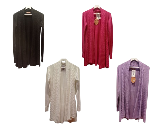 Elegante y original chaqueta larga, evasé con trenzado decorativo en el cuello estilo smoking. Sin botones ni cremallera, puedes cerrarlo con una aguja. Disponible en diversos colores: granate, malva, blanco, fucsia y negro. Cadera 120 cm. Largo 87 cm. Contorno brazo 38 cm