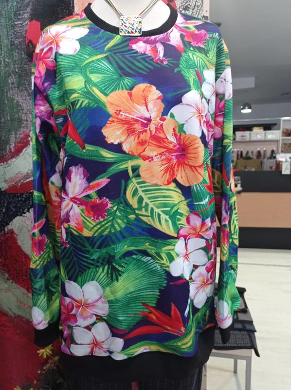 ¿Te gusta el estilo casual oversize con flores? Esta camiseta sudadera te gustará por su ligereza. Por sus medidas es talla grande. Largo: 73 cm