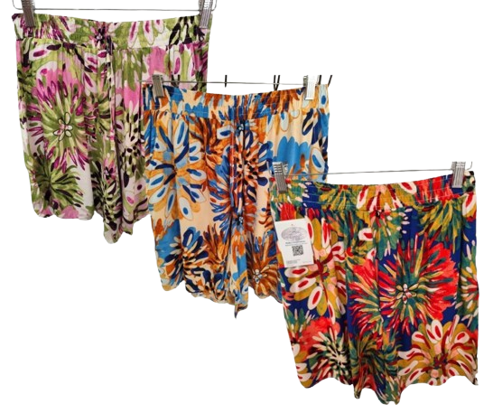 Pantalón corto amplio con bolsillos, de estampado floral y combinaciones de colores vivos, para dar ambiente veraniego a tus outfits. Disponible en tres tonos:
