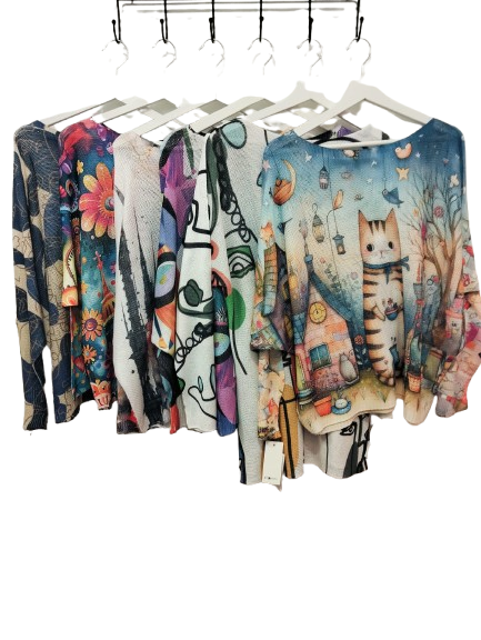 Original jersey con dibujos llamativos y colores vivos, para el fresquito de las noches veraniegas o días primaverales. Dibujos de gastos, paisajes urbanos, música y abstracto.