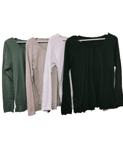 Camiseta de algodon, de manga larga con terminacion en encajes