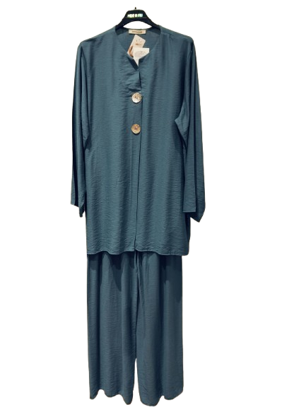 • Conjunto de Blusa y amplio pantalon con Boton decorativo