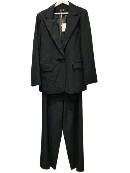 Conjunto de Chaqueta y Pantalón Negro. Elegante, sofisticado, clásico y versátil. Chaqueta: corte moderno, entallada y cómoda. Pantalón: diseño recto que estiliza la figura. Color negro intenso que combina con todo.