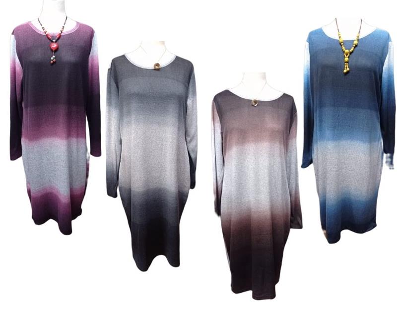 Cómodo y cálido vestido con franjas horizontales de distinto grosor y tonalidades. Tiene largo de 100 cm, ideal para ir con botas en invierno o botines en primavera u otoño. Disponible en tres talla y tres colores: marrón tostado, azul marino, burdeos y gris