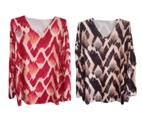 Original diseño de camiseta de manga larga, estampada con simbología de los indios apaches. Con colores vivos llamativos. Contorno de pecho 132 cm. Contorno de cadera 140 cm. Largo 70 cm. Contorno manga 38 cm.