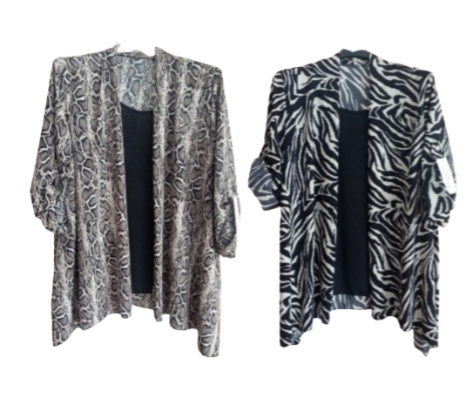 La moda no tiene tallas y este blusón lo atestigua, con sobre chaqueta. Talla grande con estampado animal print. Destaca con estilo.