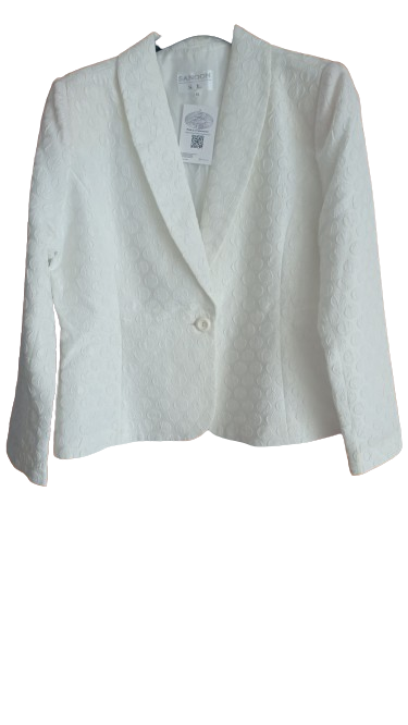 Americana en color blanco. Versatil para cualquier combinacion, ya sea un loock formal o mas casual. Con un toque de estilo y sofisticacion.