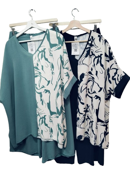 Conjunto elegante de blusa y pantalón palazzo. Realza tu estilo y te comodidad en cada movimiento. Blusa fluida: ligera, fresca y favorecedora. Pantalón palazzo: corte amplio y sofisticado que estiliza la figura y te da libertad total.